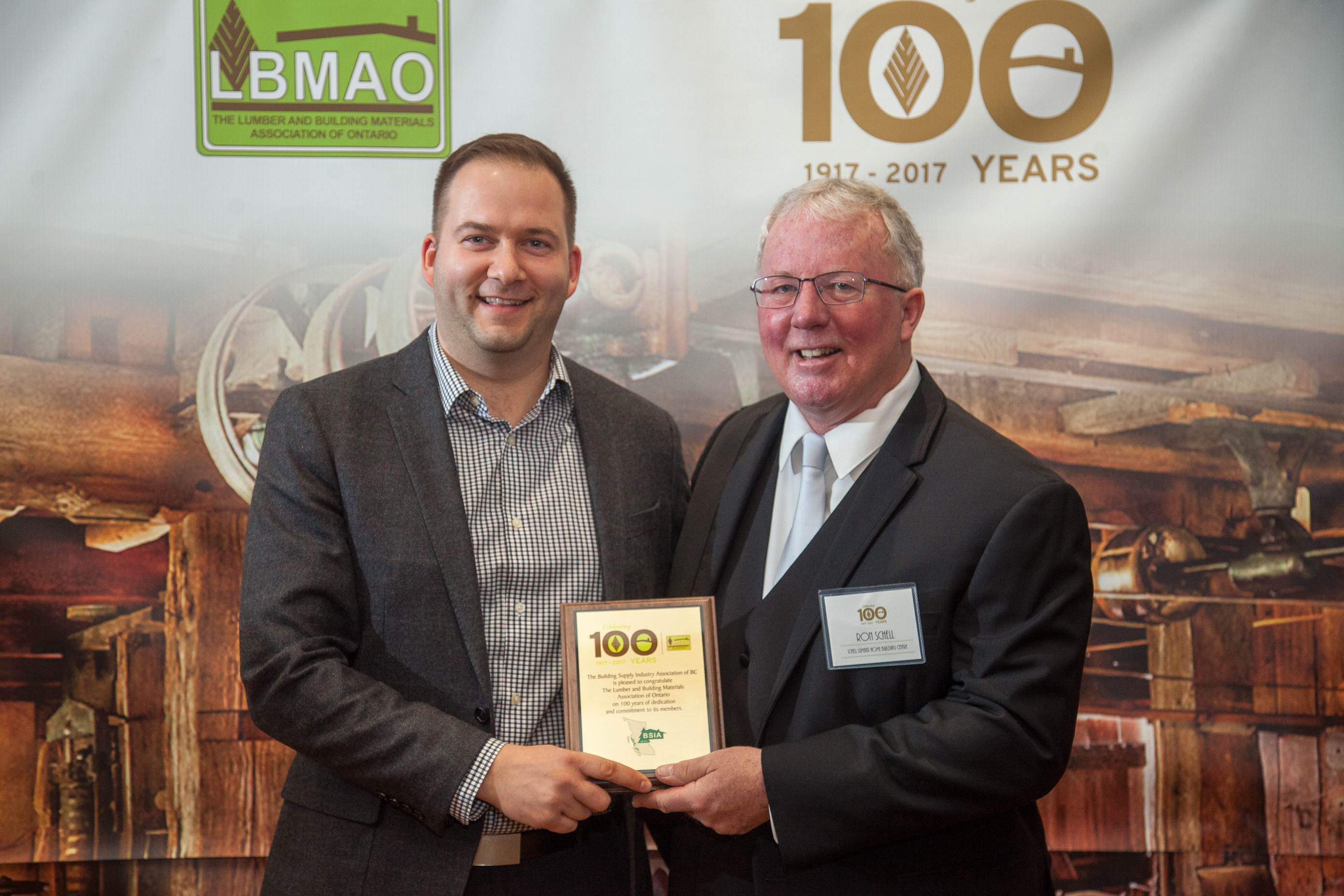 Industry Achievement Award Winners (from back row, l-r): Stan Iutzi (1994), Bill Symons (1998), Beverley Edey (2015), Lynn Edey (1996), (front row) Jim Kenny (2016)