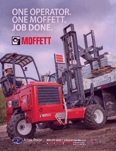 ONE OPERATOR. ONE MOFFETT. JOB DONE. Atlas Polar 888 799 4422 l info@atlaspolar.com ™ IT’S ALL ABOUT QUALITY™ IT’S ALL ABOUT QUALITY TM Canada’s #1 Cranes, Forklifts and Hooklifts AP-LBMAO-fp_Moffett2021.indd 1 2021-04-08 4:36 PM